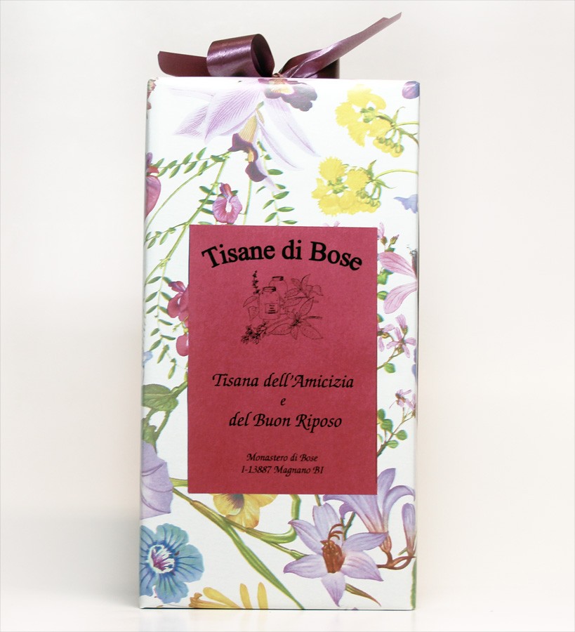 Tisana dell'amicizia: Profumato infuso di frutti in cui spicca la fragranza del sambuco e della rosa canina, arricchita dal gradevole sapore dell’uvetta passolina e dei mirtilli. È la bevanda da gustare in compagnia per un momento di convivialità, ma anche da soli per un tempo di meditazione...